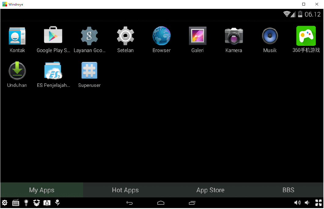Emulator Android Paling Ringan Udah pada punya smartphone android belum? Saat ini kan lagi populer populernya android kok masih belum punya smartphone android? Nah ini solusi bagi kalian yang belum punya kalian dapat menggunakan aplikasi emulator android ini di PC kalian. Windroye ini merupakan emulator android paling ringan dibandingkan Bluestack, You Wave, dan lain-lain. Ini bisa dibilang emulator android paling ringan dan sangat stabil dalam menjalankan aplikasi dan game android seperti BBM, Clash of Clans, Get Rich, Hay day, dan masih banyak lagi.